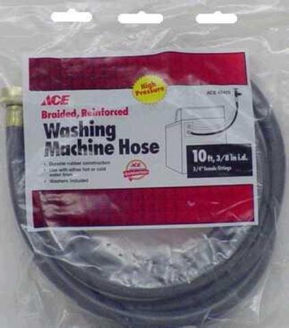 ACE WASHING MACHINE HOSE Braided reinforced hose 3/8" inlet hose 3/4" female fittings Use with hot and cold water lines Washers included Five year warranty 10'